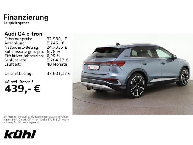 Voor zakelijke klanten bieden wij optioneel een financial lease oplossing en voor particuliere klanten een persoonlijke lening. Met onderstaande module kunt u uw maandbedrag berekenen voor het financieren van bovenstaande Audi Q4.