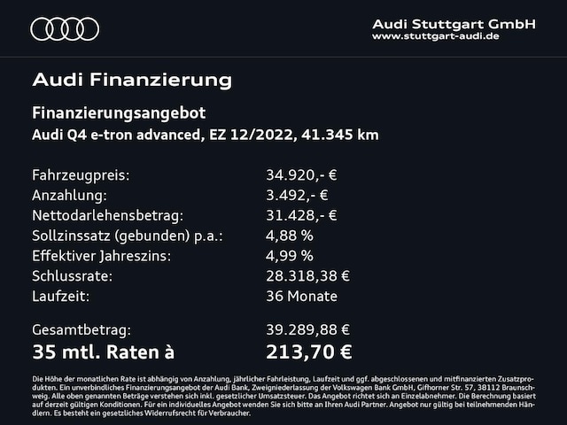 Deze Audi Q4 staat te koop in Duitsland bij een officiële Audi dealer. Wanneer u gebruik maakt van onze auto import service dan regelen wij het aankoopproces samen met u. U tekent en betaalt zelf. U bent in de meeste gevallen ook juridisch de koper. Dat kan belangrijk zijn voor garantie, rechtspositie en de lagere Duitse btw.