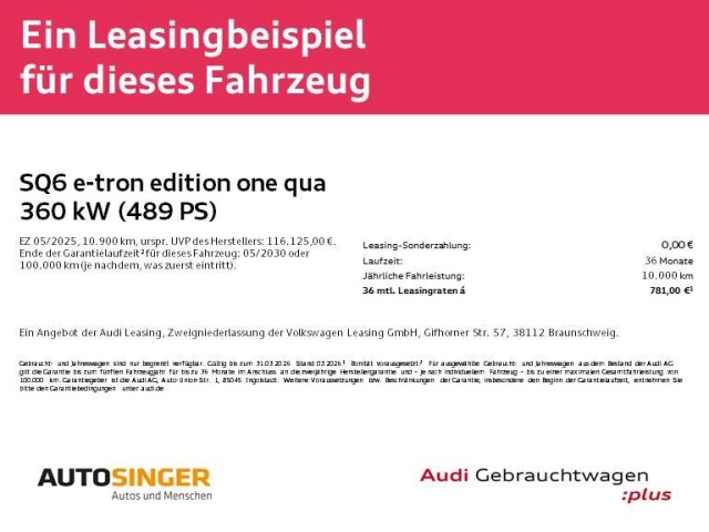 Deze Audi Q6 e-tron staat te koop in Duitsland bij een officiële Audi dealer. Wanneer u gebruik maakt van onze auto import service dan regelen wij het aankoopproces samen met u. U tekent en betaalt zelf. U bent in de meeste gevallen ook juridisch de koper. Dat kan belangrijk zijn voor garantie, rechtspositie en de lagere Duitse btw.
