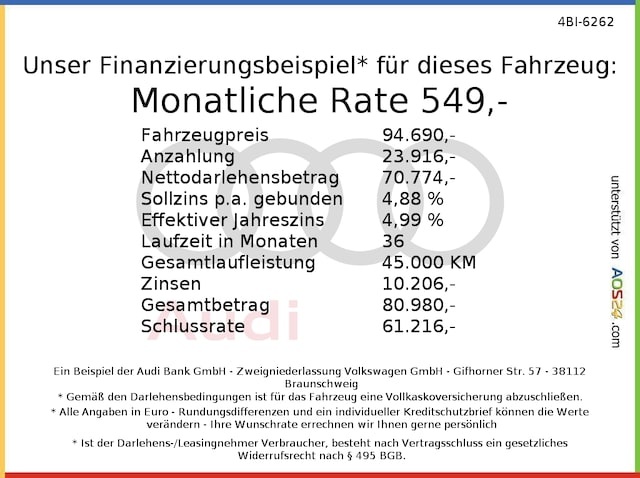 Voor zakelijke klanten bieden wij optioneel een financial lease oplossing en voor particuliere klanten een persoonlijke lening. Met onderstaande module kunt u uw maandbedrag berekenen voor het financieren van bovenstaande Audi Q7.