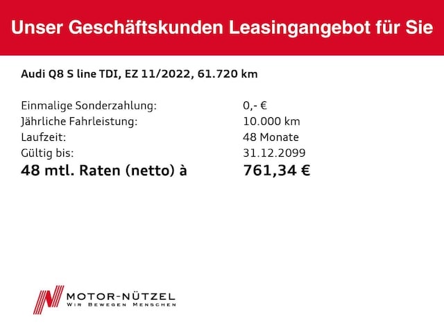 Deze Audi Q8 staat te koop in Duitsland bij een officiële Audi dealer. Wanneer u gebruik maakt van onze auto import service dan regelen wij het aankoopproces samen met u. U tekent en betaalt zelf. U bent in de meeste gevallen ook juridisch de koper. Dat kan belangrijk zijn voor garantie, rechtspositie en de lagere Duitse btw.