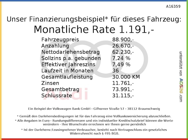 Voor zakelijke klanten bieden wij optioneel een financial lease oplossing en voor particuliere klanten een persoonlijke lening. Met onderstaande module kunt u uw maandbedrag berekenen voor het financieren van bovenstaande Audi S6.