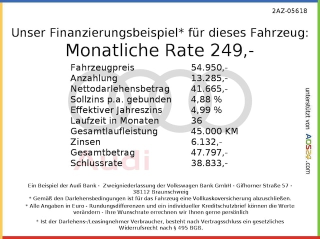 Voor zakelijke klanten bieden wij optioneel een financial lease oplossing en voor particuliere klanten een persoonlijke lening. Met onderstaande module kunt u uw maandbedrag berekenen voor het financieren van bovenstaande Audi S6.