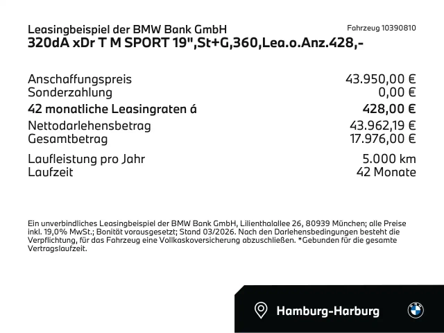 Voor zakelijke klanten bieden wij optioneel een financial lease oplossing en voor particuliere klanten een persoonlijke lening. Met onderstaande module kunt u uw maandbedrag berekenen voor het financieren van bovenstaande BMW 320.