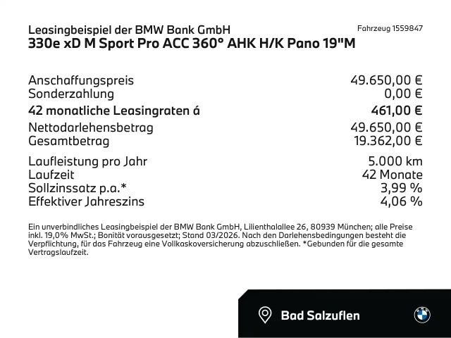 Voor zakelijke klanten bieden wij optioneel een financial lease oplossing en voor particuliere klanten een persoonlijke lening. Met onderstaande module kunt u uw maandbedrag berekenen voor het financieren van bovenstaande BMW 330.
