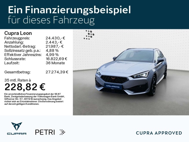 In de Duitse advertentie van deze Cupra Leon staat een CO2-uitstoot vermeld van 0 gram per km. Op basis daarvan hebben wij geautomatiseerd een indicatief rest-BPM bedrag van € 0 berekend op basis van de afschrijvingstabel van de Belastingdienst. Een handmatige BPM berekening o.b.v. een waardebepaling leidt voor jonge auto's vaak tot een lager rest-BPM bedrag. Vraag hiertoe een offerte aan, vaak kunnen we daar een besparing voor u realiseren. Om hiervoor een fiscaal akkoord te krijgen zal de BPM aangifte worden aangevuld met een waardebepaling taxatierapport. Wij rekenen een fee voor onze bemiddeling hierin. Uiteraard alleen wanneer dit rendabel is.