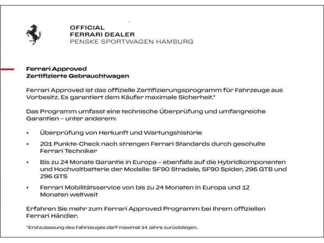 Deze Ferrari Portofino staat te koop in Duitsland bij een officiële Ferrari dealer. Wanneer u gebruik maakt van onze auto import service dan regelen wij het aankoopproces samen met u. U tekent en betaalt zelf. U bent in de meeste gevallen ook juridisch de koper. Dat kan belangrijk zijn voor garantie, rechtspositie en de lagere Duitse btw.