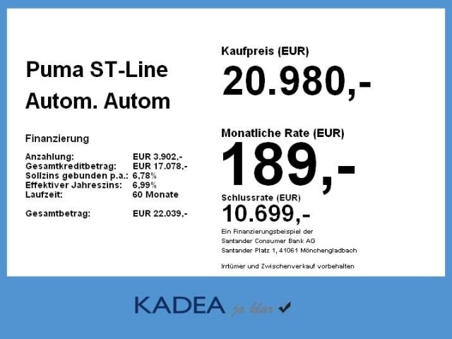 Deze Ford Puma staat te koop in Duitsland bij een officiële Ford dealer. Wanneer u gebruik maakt van onze auto import service dan regelen wij het aankoopproces samen met u. U tekent en betaalt zelf. U bent in de meeste gevallen ook juridisch de koper. Dat kan belangrijk zijn voor garantie, rechtspositie en de lagere Duitse btw.
