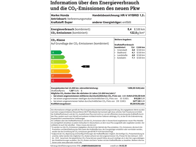 In de Duitse advertentie van deze Honda HR-V staat een CO2-uitstoot vermeld van 122 gram per km. Op basis daarvan hebben wij geautomatiseerd een indicatief rest-BPM bedrag van € 6.196 berekend op basis van de afschrijvingstabel van de Belastingdienst. Een handmatige BPM berekening o.b.v. een waardebepaling leidt voor jonge auto's vaak tot een lager rest-BPM bedrag. Vraag hiertoe een offerte aan, vaak kunnen we daar een besparing voor u realiseren. Om hiervoor een fiscaal akkoord te krijgen zal de BPM aangifte worden aangevuld met een waardebepaling taxatierapport. Wij rekenen een fee voor onze bemiddeling hierin. Uiteraard alleen wanneer dit rendabel is.