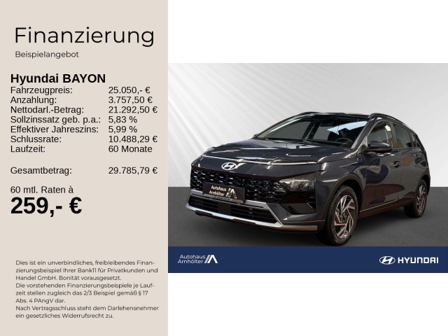 Voor zakelijke klanten bieden wij optioneel een financial lease oplossing en voor particuliere klanten een persoonlijke lening. Met onderstaande module kunt u uw maandbedrag berekenen voor het financieren van bovenstaande Hyundai Bayon.