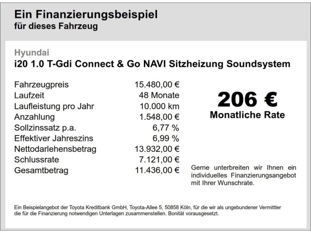 Voor zakelijke klanten bieden wij optioneel een financial lease oplossing en voor particuliere klanten een persoonlijke lening. Met onderstaande module kunt u uw maandbedrag berekenen voor het financieren van bovenstaande Hyundai i20.