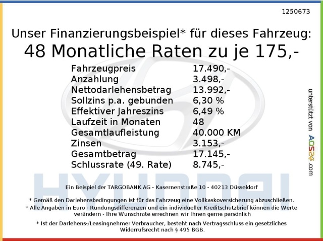 Voor zakelijke klanten bieden wij optioneel een financial lease oplossing en voor particuliere klanten een persoonlijke lening. Met onderstaande module kunt u uw maandbedrag berekenen voor het financieren van bovenstaande Hyundai i20.
