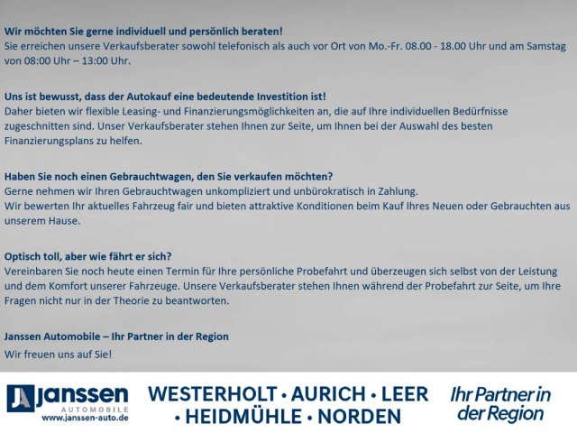 N.b. deze informatie is gebaseerd op de gegevens uit de advertentie van de verkoper en een computermodel voor optiematching. Er kunnen fouten voorkomen; Das Automotive aanvaardt hiervoor geen aansprakelijkheid. Controleer altijd vóór aankoop de volledige optielijst in de Duitse advertentie en verifieer in de koopovereenkomst of alles overeenkomt met uw wensen. Bij twijfel vragen wij dit graag voor u na bij de verkoper
