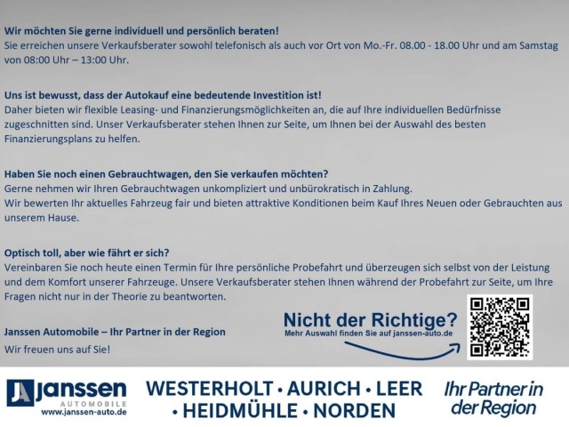 N.b. deze informatie is gebaseerd op de gegevens uit de advertentie van de verkoper en een computermodel voor optiematching. Er kunnen fouten voorkomen; Das Automotive aanvaardt hiervoor geen aansprakelijkheid. Controleer altijd vóór aankoop de volledige optielijst in de Duitse advertentie en verifieer in de koopovereenkomst of alles overeenkomt met uw wensen. Bij twijfel vragen wij dit graag voor u na bij de verkoper
