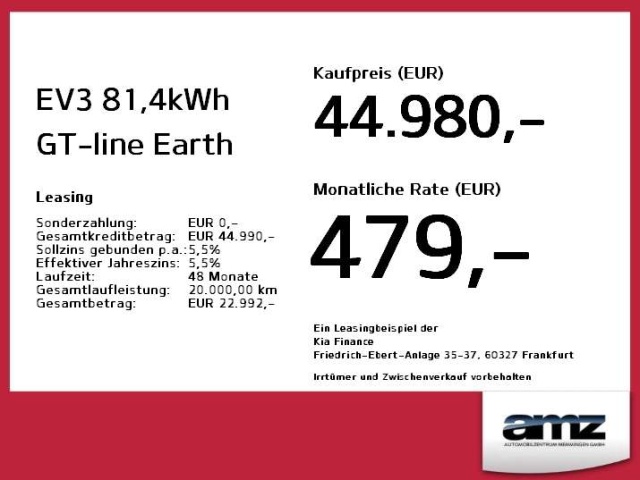 Voor zakelijke klanten bieden wij optioneel een financial lease oplossing en voor particuliere klanten een persoonlijke lening. Met onderstaande module kunt u uw maandbedrag berekenen voor het financieren van bovenstaande Kia EV3.