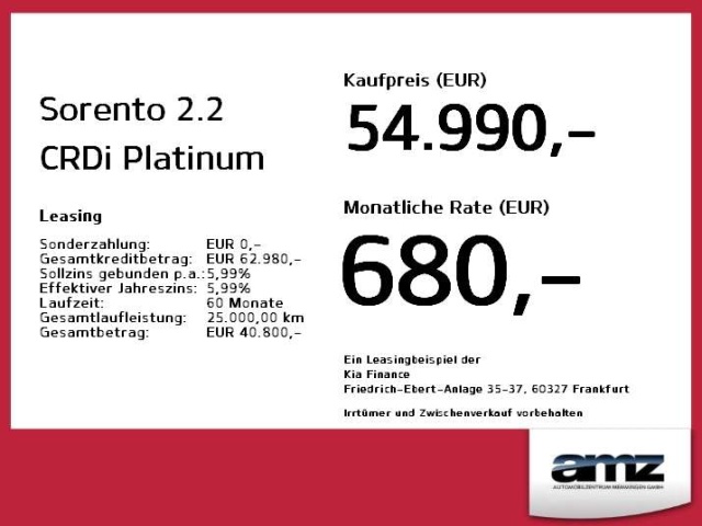 In de Duitse advertentie van deze Kia Sorento staat een CO2-uitstoot vermeld van 174 gram per km. Op basis daarvan hebben wij geautomatiseerd een indicatief rest-BPM bedrag van € 26.859 berekend op basis van de afschrijvingstabel van de Belastingdienst. Een handmatige BPM berekening o.b.v. een waardebepaling leidt voor jonge auto's vaak tot een lager rest-BPM bedrag. Vraag hiertoe een offerte aan, vaak kunnen we daar een besparing voor u realiseren. Om hiervoor een fiscaal akkoord te krijgen zal de BPM aangifte worden aangevuld met een waardebepaling taxatierapport. Wij rekenen een fee voor onze bemiddeling hierin. Uiteraard alleen wanneer dit rendabel is.