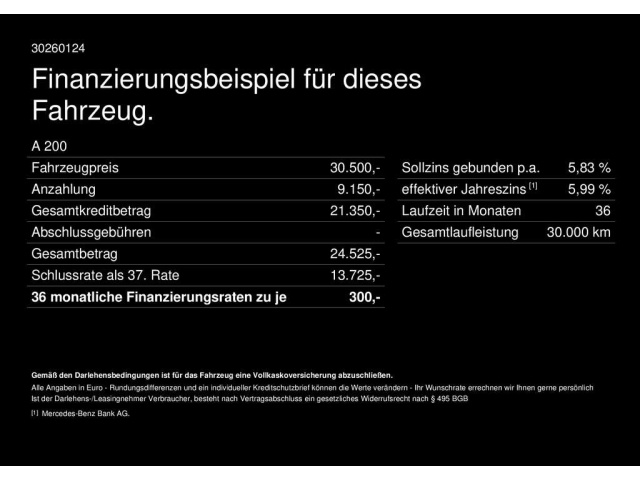 Voor zakelijke klanten bieden wij optioneel een financial lease oplossing en voor particuliere klanten een persoonlijke lening. Met onderstaande module kunt u uw maandbedrag berekenen voor het financieren van bovenstaande Mercedes-Benz A 200.