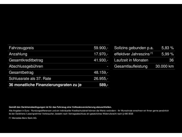 Voor zakelijke klanten bieden wij optioneel een financial lease oplossing en voor particuliere klanten een persoonlijke lening. Met onderstaande module kunt u uw maandbedrag berekenen voor het financieren van bovenstaande Mercedes-Benz C 43 AMG.