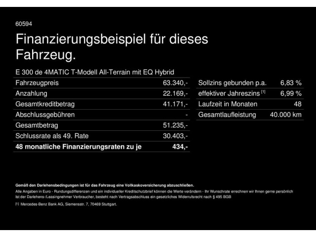 Voor zakelijke klanten bieden wij optioneel een financial lease oplossing en voor particuliere klanten een persoonlijke lening. Met onderstaande module kunt u uw maandbedrag berekenen voor het financieren van bovenstaande Mercedes-Benz E 300.