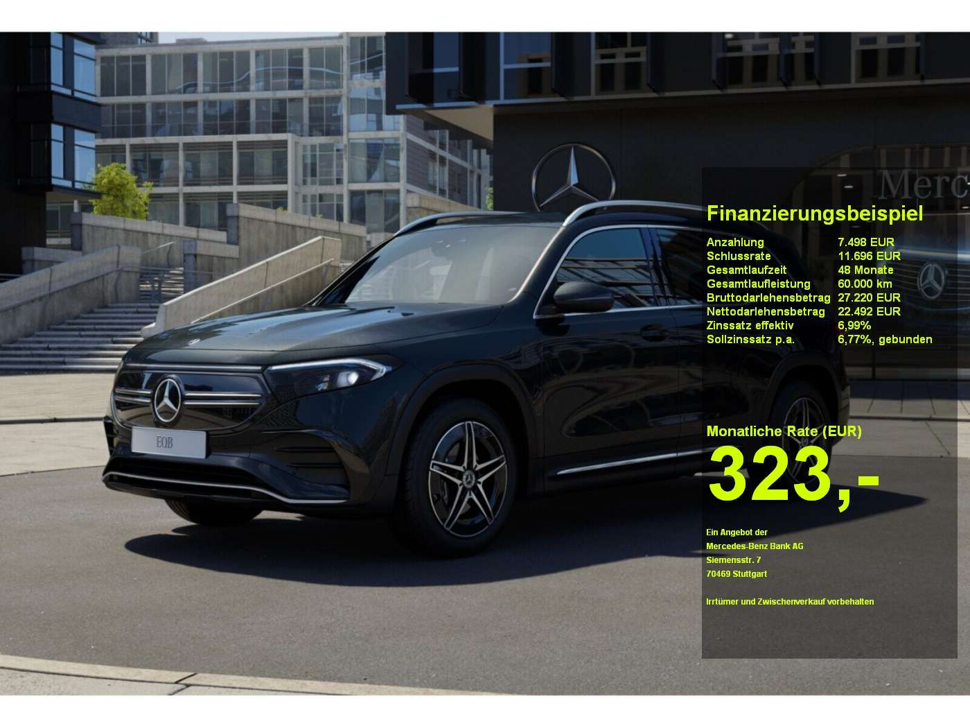Voor zakelijke klanten bieden wij optioneel een financial lease oplossing en voor particuliere klanten een persoonlijke lening. Met onderstaande module kunt u uw maandbedrag berekenen voor het financieren van bovenstaande Mercedes-Benz EQB.