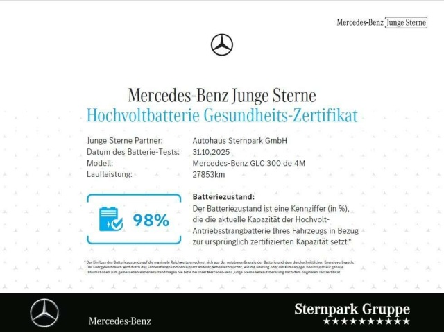 In de Duitse advertentie van deze Mercedes-Benz GLC 300 staat een CO2-uitstoot vermeld van 11 gram per km. Op basis daarvan hebben wij geautomatiseerd een indicatief rest-BPM bedrag van € 176 berekend op basis van de afschrijvingstabel van de Belastingdienst. Een handmatige BPM berekening o.b.v. een waardebepaling leidt voor jonge auto's vaak tot een lager rest-BPM bedrag. Vraag hiertoe een offerte aan, vaak kunnen we daar een besparing voor u realiseren. Om hiervoor een fiscaal akkoord te krijgen zal de BPM aangifte worden aangevuld met een waardebepaling taxatierapport. Wij rekenen een fee voor onze bemiddeling hierin. Uiteraard alleen wanneer dit rendabel is.