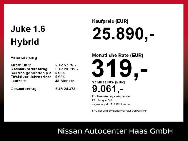 Voor zakelijke klanten bieden wij optioneel een financial lease oplossing en voor particuliere klanten een persoonlijke lening. Met onderstaande module kunt u uw maandbedrag berekenen voor het financieren van bovenstaande Nissan Juke.
