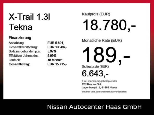 Voor zakelijke klanten bieden wij optioneel een financial lease oplossing en voor particuliere klanten een persoonlijke lening. Met onderstaande module kunt u uw maandbedrag berekenen voor het financieren van bovenstaande Nissan X-Trail.