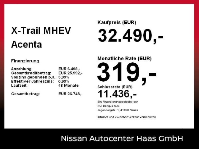 Voor zakelijke klanten bieden wij optioneel een financial lease oplossing en voor particuliere klanten een persoonlijke lening. Met onderstaande module kunt u uw maandbedrag berekenen voor het financieren van bovenstaande Nissan X-Trail.