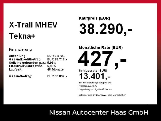 Voor zakelijke klanten bieden wij optioneel een financial lease oplossing en voor particuliere klanten een persoonlijke lening. Met onderstaande module kunt u uw maandbedrag berekenen voor het financieren van bovenstaande Nissan X-Trail.