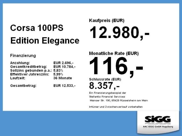 Voor zakelijke klanten bieden wij optioneel een financial lease oplossing en voor particuliere klanten een persoonlijke lening. Met onderstaande module kunt u uw maandbedrag berekenen voor het financieren van bovenstaande Opel Corsa.