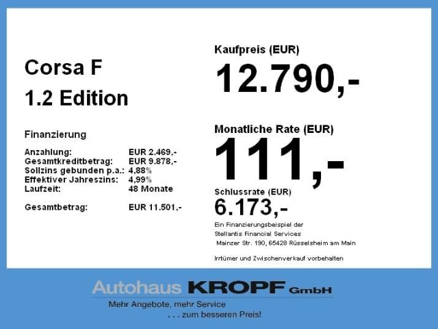 Voor zakelijke klanten bieden wij optioneel een financial lease oplossing en voor particuliere klanten een persoonlijke lening. Met onderstaande module kunt u uw maandbedrag berekenen voor het financieren van bovenstaande Opel Corsa.