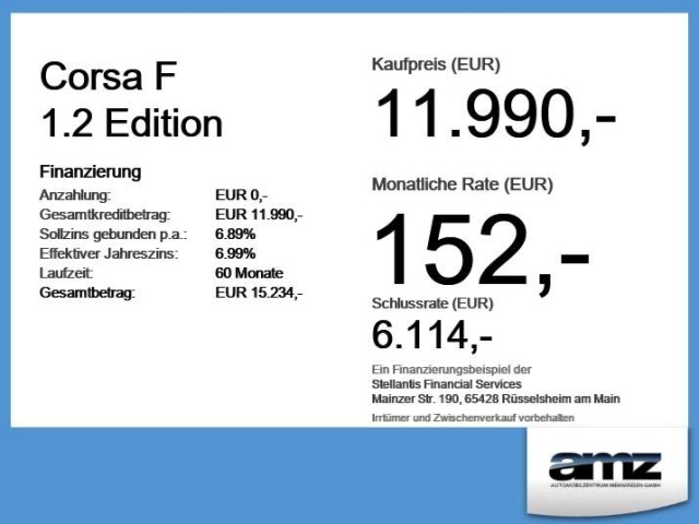 Voor zakelijke klanten bieden wij optioneel een financial lease oplossing en voor particuliere klanten een persoonlijke lening. Met onderstaande module kunt u uw maandbedrag berekenen voor het financieren van bovenstaande Opel Corsa.