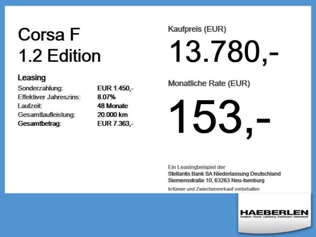Voor zakelijke klanten bieden wij optioneel een financial lease oplossing en voor particuliere klanten een persoonlijke lening. Met onderstaande module kunt u uw maandbedrag berekenen voor het financieren van bovenstaande Opel Corsa.