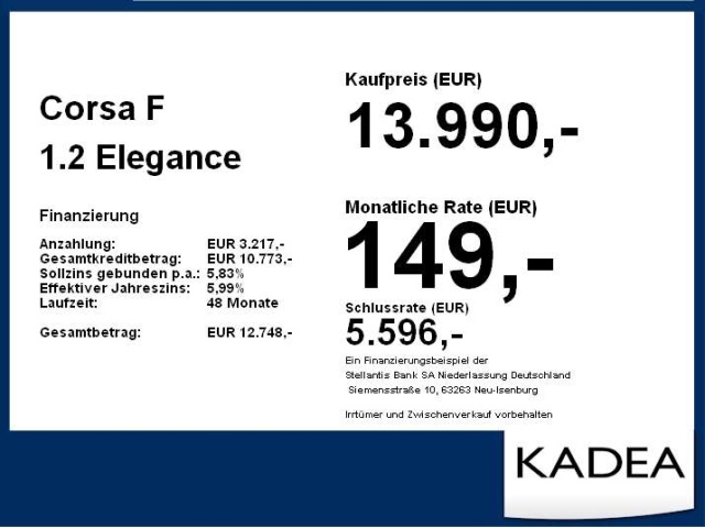 Voor zakelijke klanten bieden wij optioneel een financial lease oplossing en voor particuliere klanten een persoonlijke lening. Met onderstaande module kunt u uw maandbedrag berekenen voor het financieren van bovenstaande Opel Corsa.