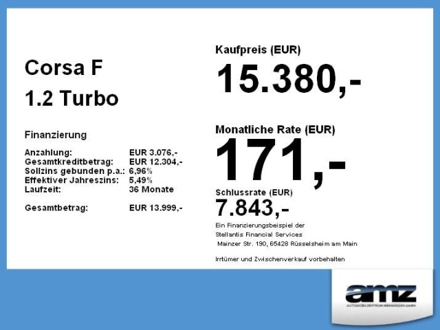 Voor zakelijke klanten bieden wij optioneel een financial lease oplossing en voor particuliere klanten een persoonlijke lening. Met onderstaande module kunt u uw maandbedrag berekenen voor het financieren van bovenstaande Opel Corsa.