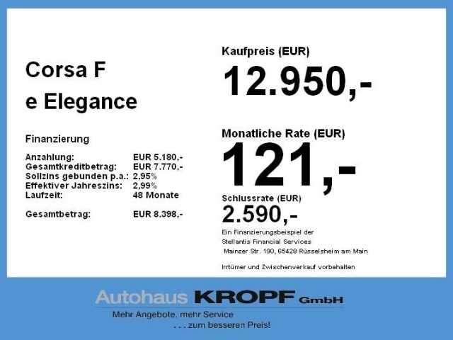 Voor zakelijke klanten bieden wij optioneel een financial lease oplossing en voor particuliere klanten een persoonlijke lening. Met onderstaande module kunt u uw maandbedrag berekenen voor het financieren van bovenstaande Opel Corsa.