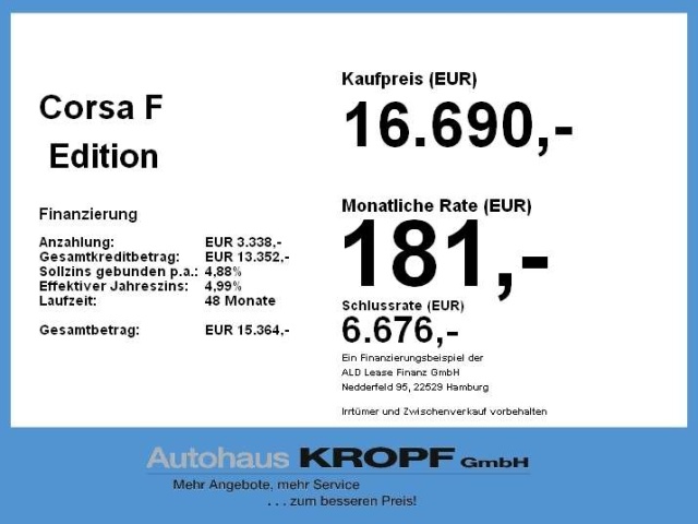 Voor zakelijke klanten bieden wij optioneel een financial lease oplossing en voor particuliere klanten een persoonlijke lening. Met onderstaande module kunt u uw maandbedrag berekenen voor het financieren van bovenstaande Opel Corsa.