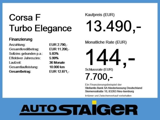 Voor zakelijke klanten bieden wij optioneel een financial lease oplossing en voor particuliere klanten een persoonlijke lening. Met onderstaande module kunt u uw maandbedrag berekenen voor het financieren van bovenstaande Opel Corsa.