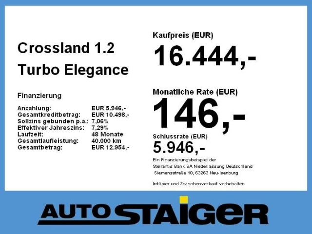 Deze Opel Crossland staat te koop in Duitsland bij een officiële Opel dealer. Wanneer u gebruik maakt van onze auto import service dan regelen wij het aankoopproces samen met u. U tekent en betaalt zelf. U bent in de meeste gevallen ook juridisch de koper. Dat kan belangrijk zijn voor garantie, rechtspositie en de lagere Duitse btw.