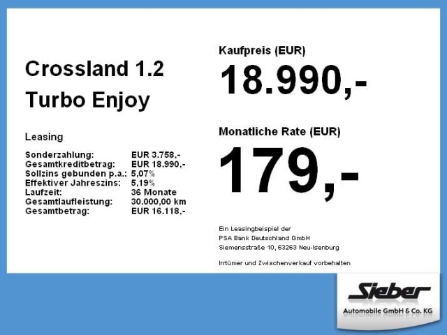 Deze Opel Crossland staat te koop in Duitsland bij een officiële Opel dealer. Wanneer u gebruik maakt van onze auto import service dan regelen wij het aankoopproces samen met u. U tekent en betaalt zelf. U bent in de meeste gevallen ook juridisch de koper. Dat kan belangrijk zijn voor garantie, rechtspositie en de lagere Duitse btw.