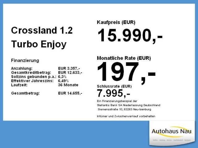 Deze Opel Crossland staat te koop in Duitsland bij een officiële Opel dealer. Wanneer u gebruik maakt van onze auto import service dan regelen wij het aankoopproces samen met u. U tekent en betaalt zelf. U bent in de meeste gevallen ook juridisch de koper. Dat kan belangrijk zijn voor garantie, rechtspositie en de lagere Duitse btw.