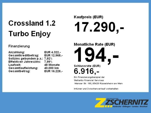 Voor zakelijke klanten bieden wij optioneel een financial lease oplossing en voor particuliere klanten een persoonlijke lening. Met onderstaande module kunt u uw maandbedrag berekenen voor het financieren van bovenstaande Opel Crossland.