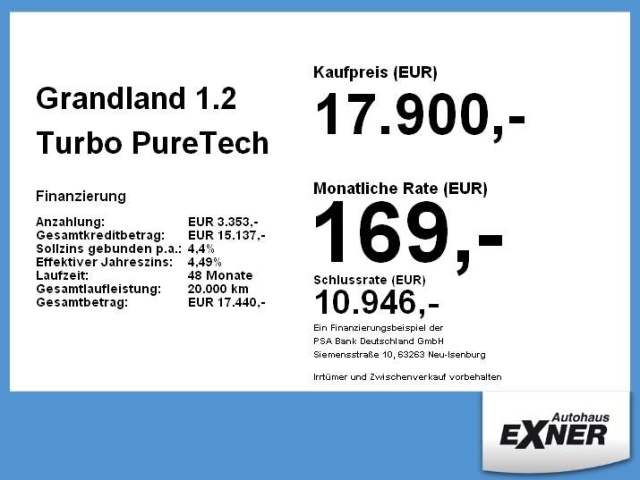 In de Duitse advertentie van deze Opel Grandland staat een CO2-uitstoot vermeld van 146 gram per km. Op basis daarvan hebben wij geautomatiseerd een indicatief rest-BPM bedrag van € 2.985 berekend op basis van de afschrijvingstabel van de Belastingdienst. Een handmatige BPM berekening o.b.v. een waardebepaling leidt voor jonge auto's vaak tot een lager rest-BPM bedrag. Vraag hiertoe een offerte aan, vaak kunnen we daar een besparing voor u realiseren. Om hiervoor een fiscaal akkoord te krijgen zal de BPM aangifte worden aangevuld met een waardebepaling taxatierapport. Wij rekenen een fee voor onze bemiddeling hierin. Uiteraard alleen wanneer dit rendabel is.