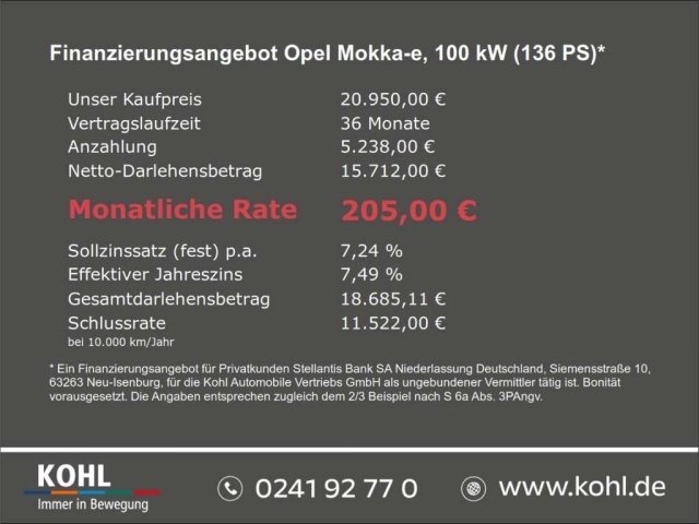 Voor zakelijke klanten bieden wij optioneel een financial lease oplossing en voor particuliere klanten een persoonlijke lening. Met onderstaande module kunt u uw maandbedrag berekenen voor het financieren van bovenstaande Opel Mokka E.