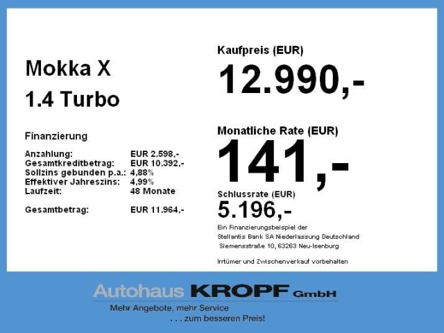 Deze Opel Mokka X staat te koop in Duitsland bij een officiële Opel dealer. Wanneer u gebruik maakt van onze auto import service dan regelen wij het aankoopproces samen met u. U tekent en betaalt zelf. U bent in de meeste gevallen ook juridisch de koper. Dat kan belangrijk zijn voor garantie, rechtspositie en de lagere Duitse btw.