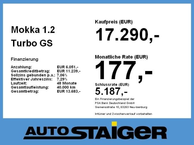 Voor zakelijke klanten bieden wij optioneel een financial lease oplossing en voor particuliere klanten een persoonlijke lening. Met onderstaande module kunt u uw maandbedrag berekenen voor het financieren van bovenstaande Opel Mokka.