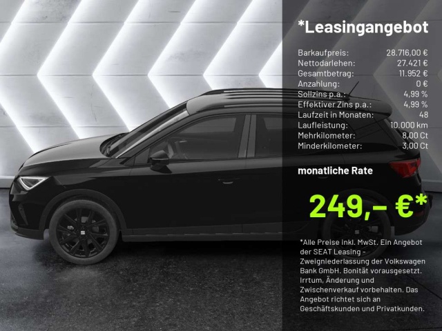 Voor zakelijke klanten bieden wij optioneel een financial lease oplossing en voor particuliere klanten een persoonlijke lening. Met onderstaande module kunt u uw maandbedrag berekenen voor het financieren van bovenstaande Seat Arona.