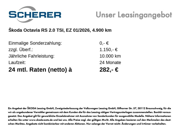 Voor zakelijke klanten bieden wij optioneel een financial lease oplossing en voor particuliere klanten een persoonlijke lening. Met onderstaande module kunt u uw maandbedrag berekenen voor het financieren van bovenstaande Skoda Octavia.