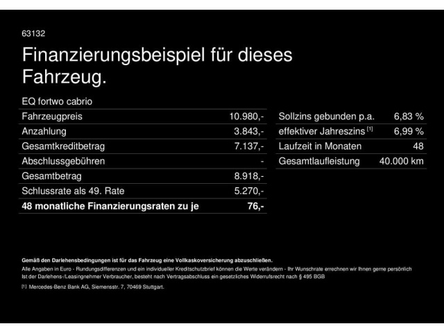 Voor zakelijke klanten bieden wij optioneel een financial lease oplossing en voor particuliere klanten een persoonlijke lening. Met onderstaande module kunt u uw maandbedrag berekenen voor het financieren van bovenstaande Smart forTwo.