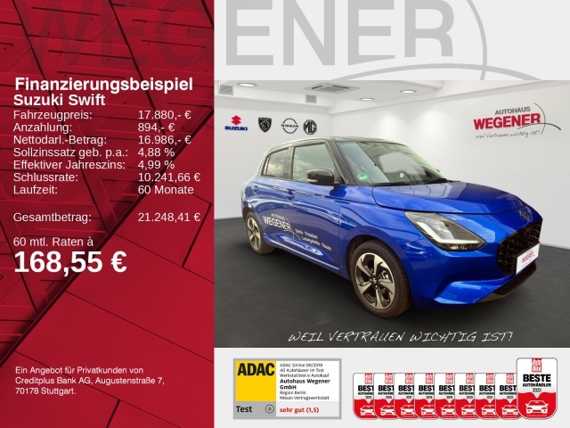 Voor zakelijke klanten bieden wij optioneel een financial lease oplossing en voor particuliere klanten een persoonlijke lening. Met onderstaande module kunt u uw maandbedrag berekenen voor het financieren van bovenstaande Suzuki Swift.